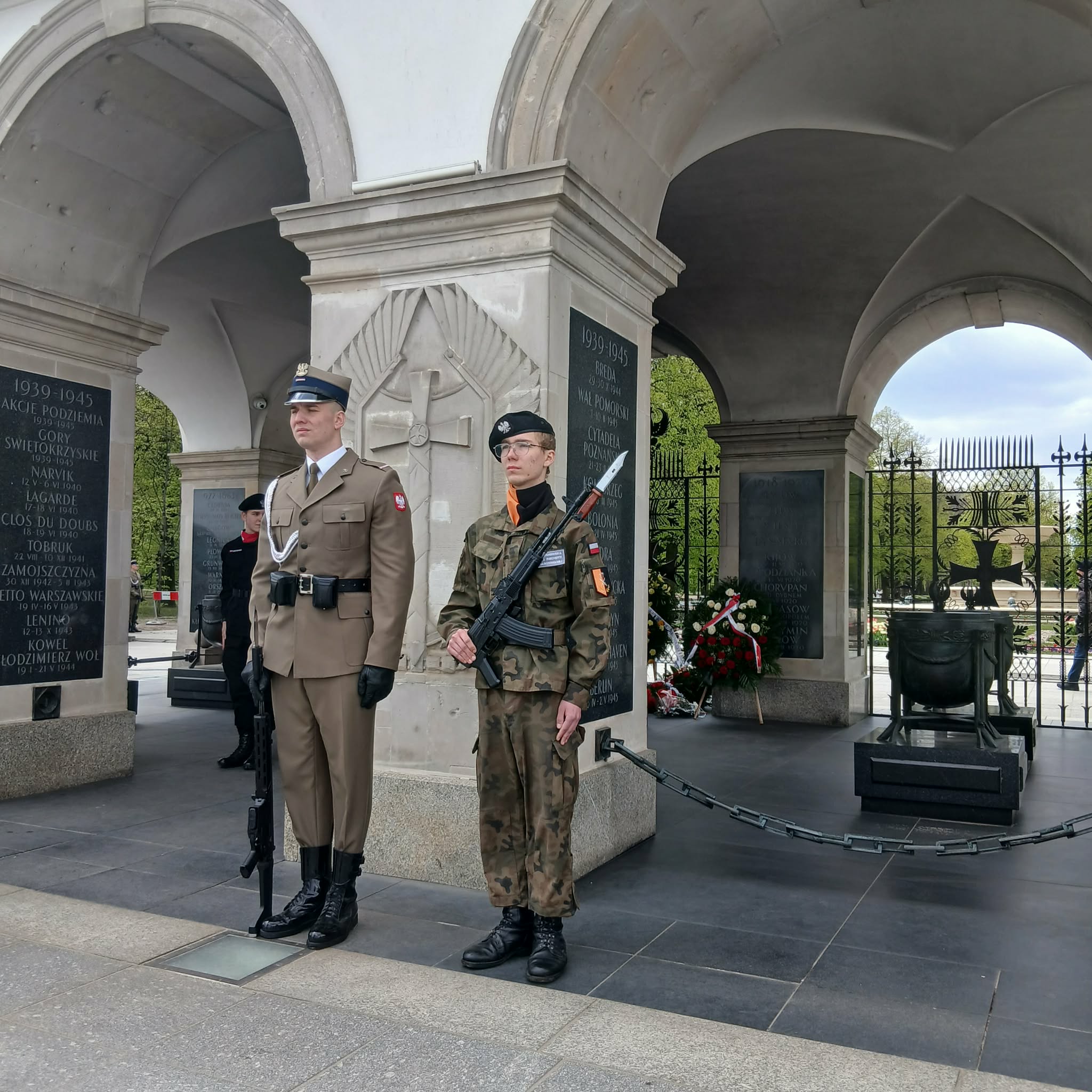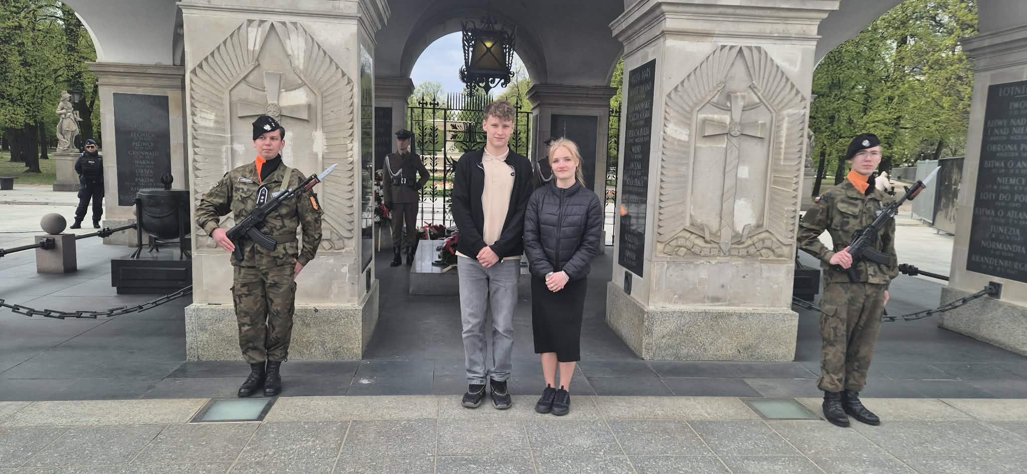 Pan Patryk Wiśniowski oraz Jakub Kot pełnili służbę wartowniczą pod Grobem Nieznanego Żołnierza wraz z żołnierzami Pułku Reprezentacyjnego. Pozostali uczniowie złożyli pod najważniejszym grobem w Polsce wiązankę kwiatów od ZSME oraz złożyli podpis w Księdze Pamiątkowej Grobu.